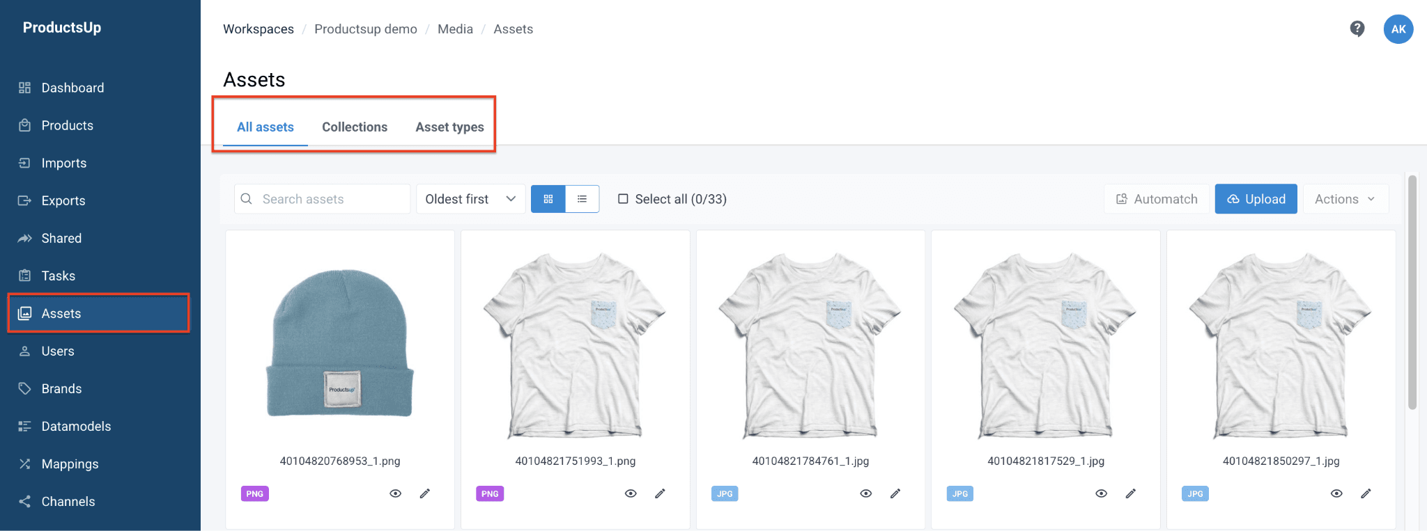Automatch is a powerful tool that helps you match asset names to product GTINs. You can link as many assets as you need to each product. To match an asset: