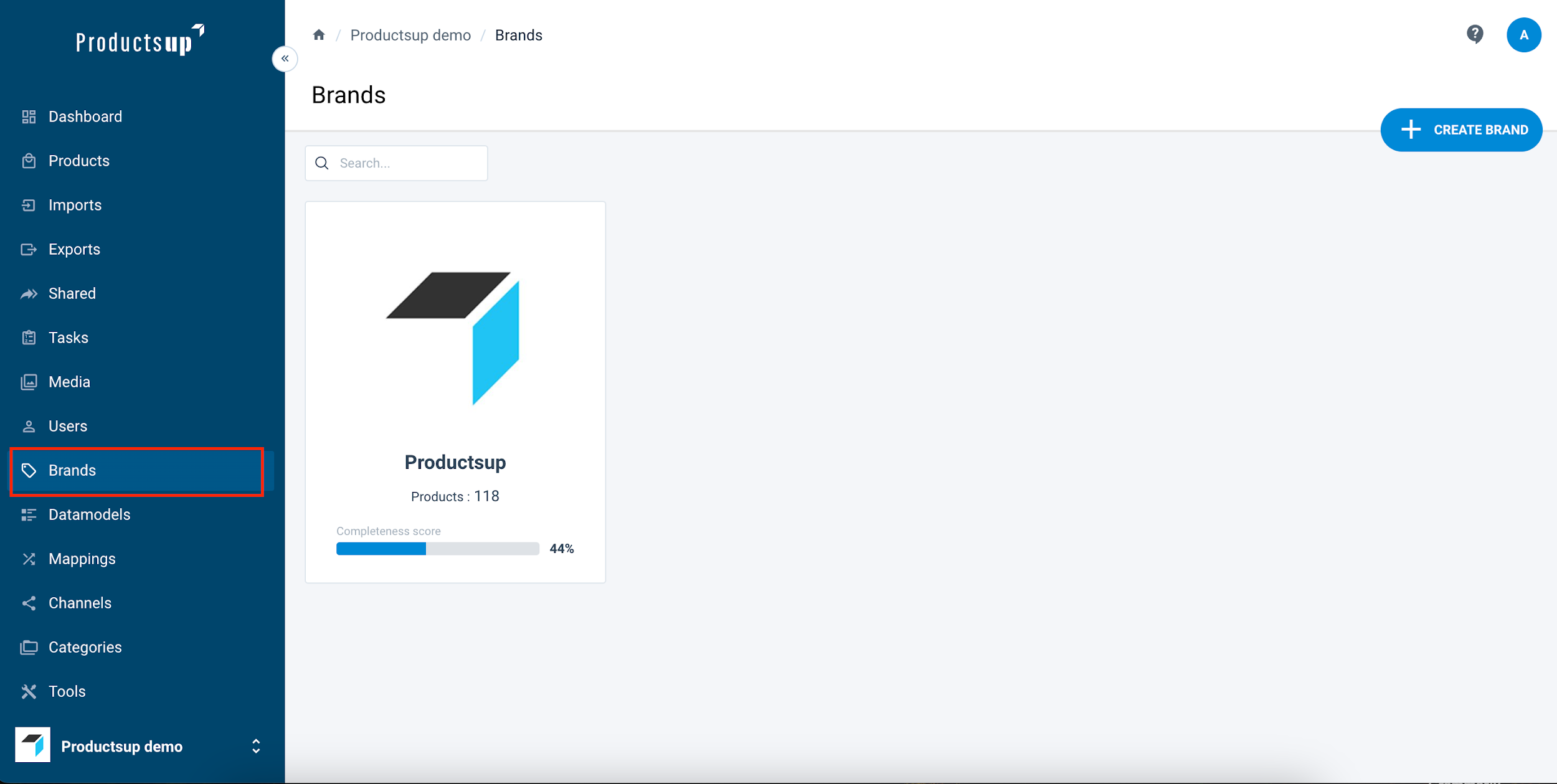 To create a new brand, select Create brand in the top right corner of the page.