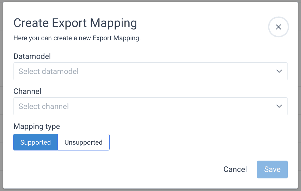 - Unsupported: A mapping that lets you enter any mapping target without a predefined template. For example, for all GS1 exports.