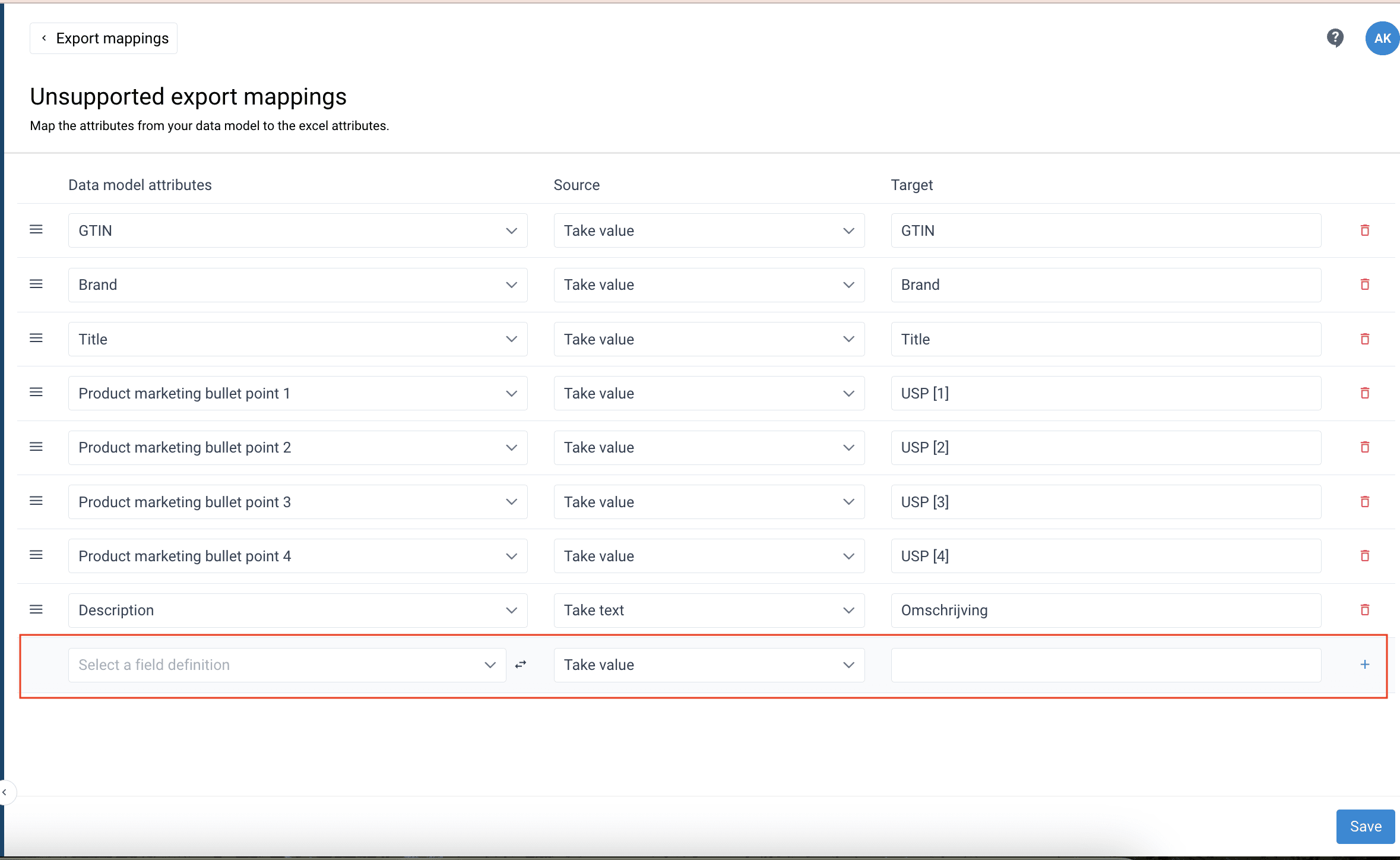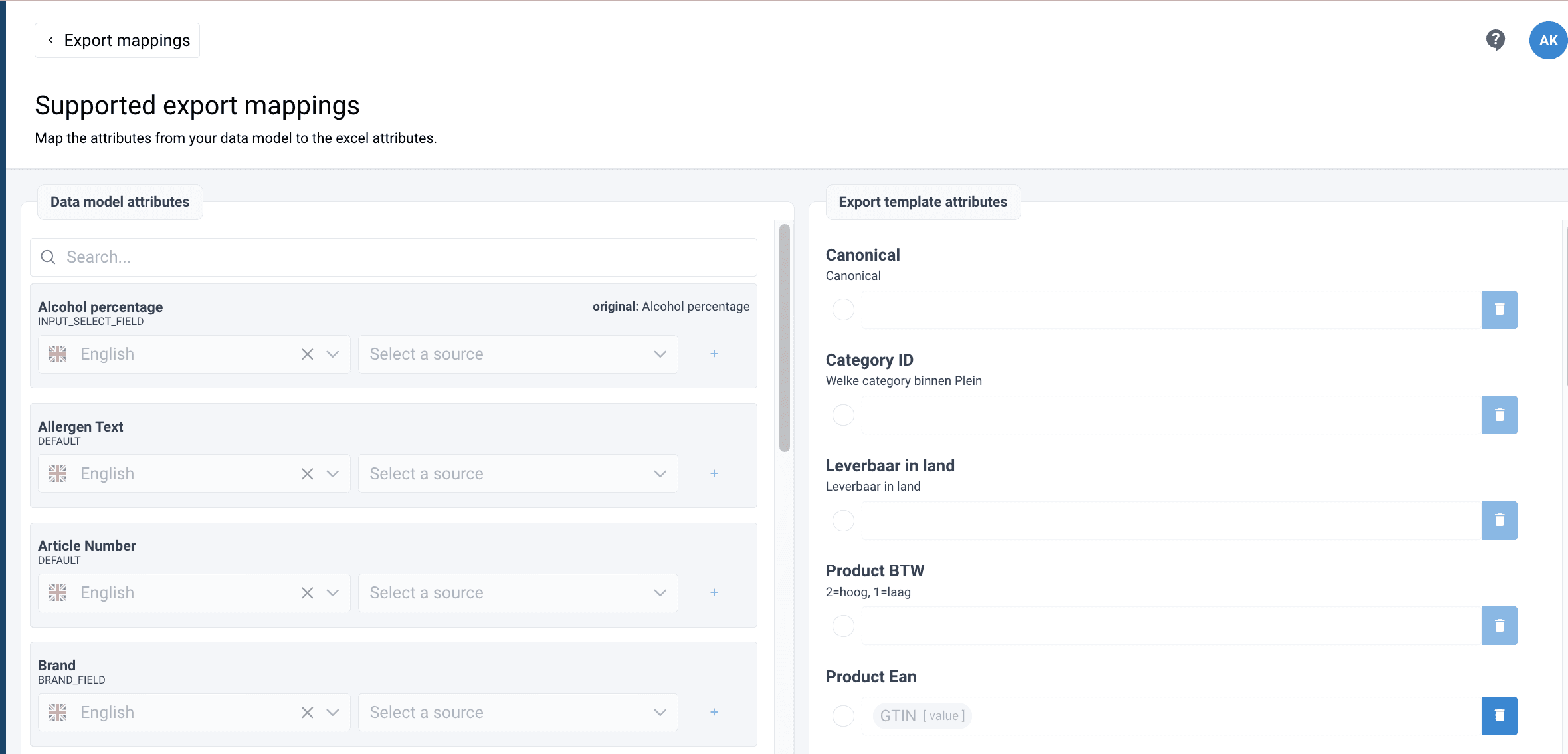 Export mapping is the functionality that helps you send the product data from your data model to the correct fields in the retailer's template.