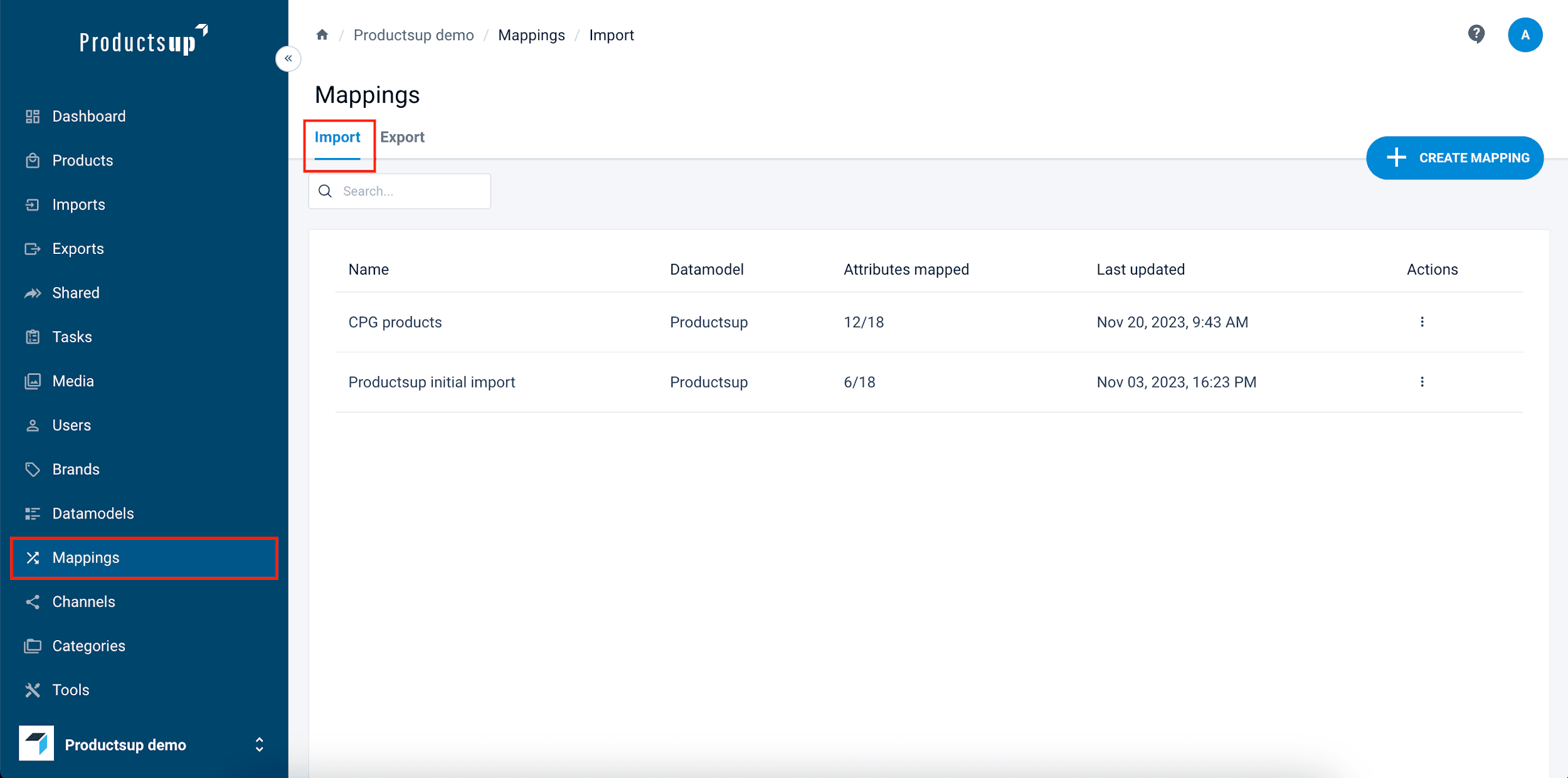 - Go to Mapping and find the necessary mapping in the Import tab.