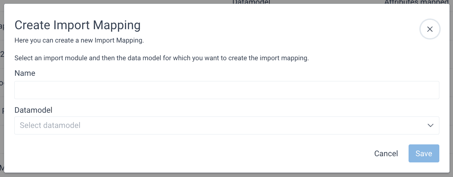 - From the Datamodel drop-down menu, select a data model with which you want to map attributes from your imports.