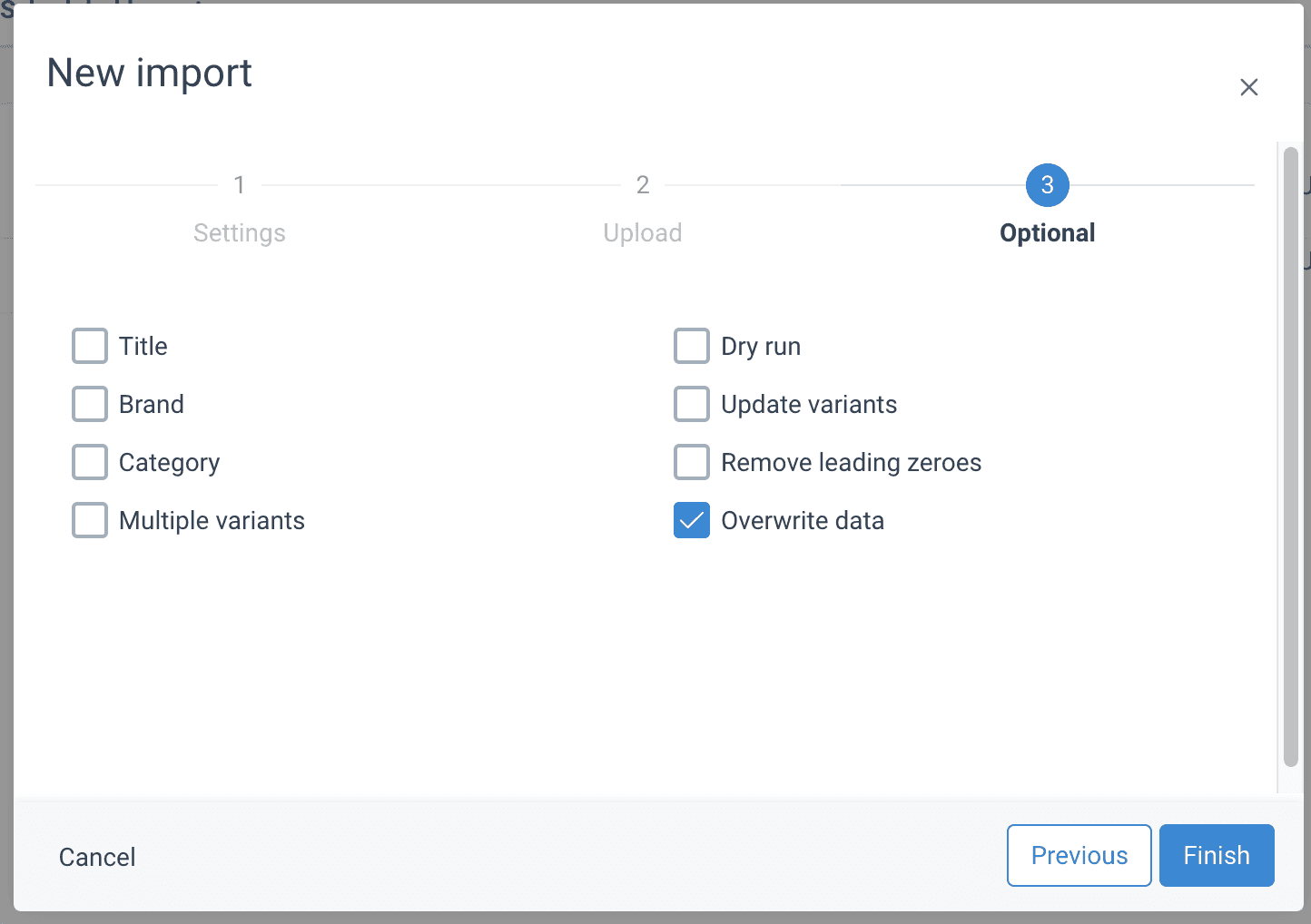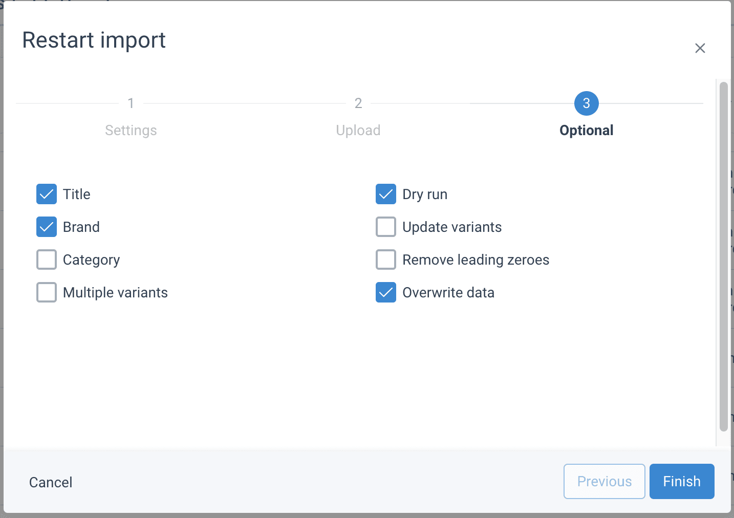 | Update brand | If checked, product brands were updated. This is enabled by default. |