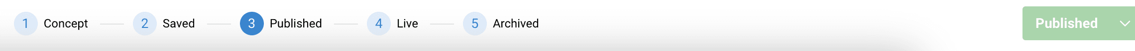For every product, at the bottom of the product details page, you can see the workflow line and the status of the product.