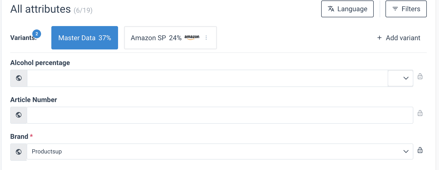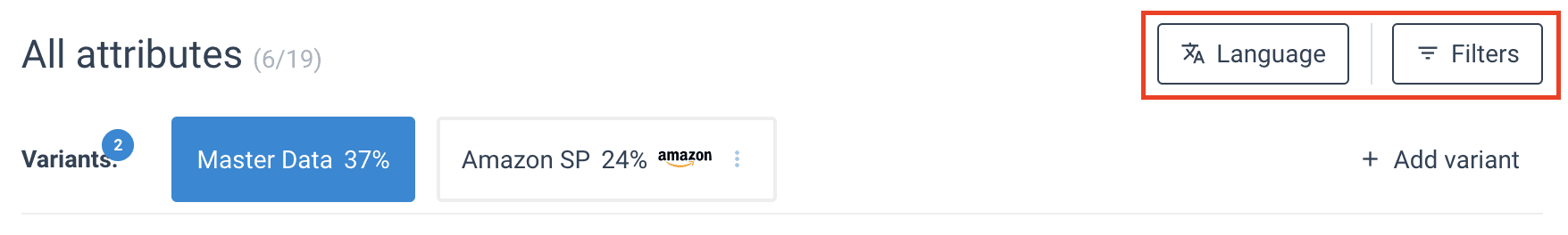 Filters let you leave only the fields in the needed language in the All attributes section. You can also select Only show the empty fields to view only empty fields in the product detail page.
