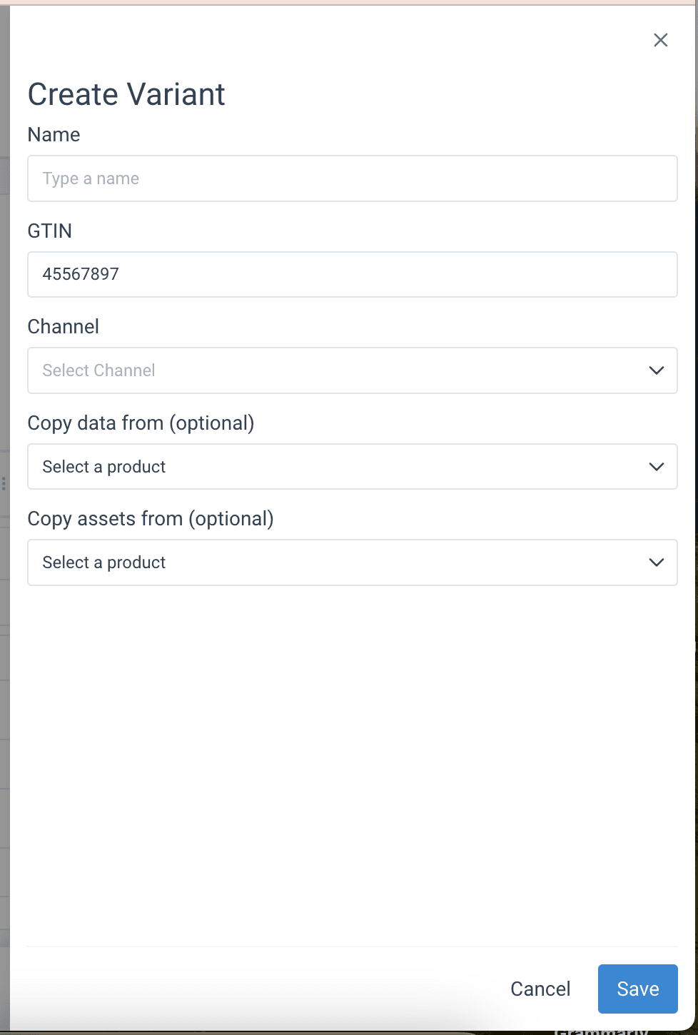 - In Variants, select Add variant. The sidebar Create Variant opens.